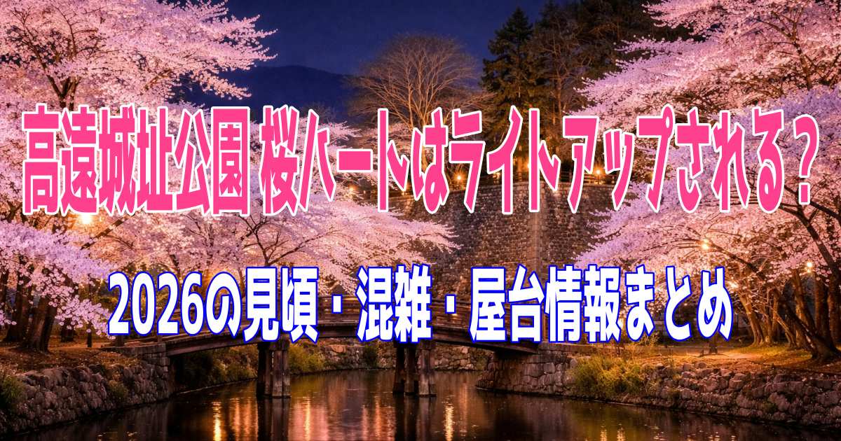 この記事では、高遠城址公園の桜ライトアップ2026の情報を中心に、話題になっている桜ハートの見どころ、見頃の目安、混雑の傾向、そして桜まつりの期間や屋台・入場料まで、気になるポイントをわかりやすくまとめていきますね。
